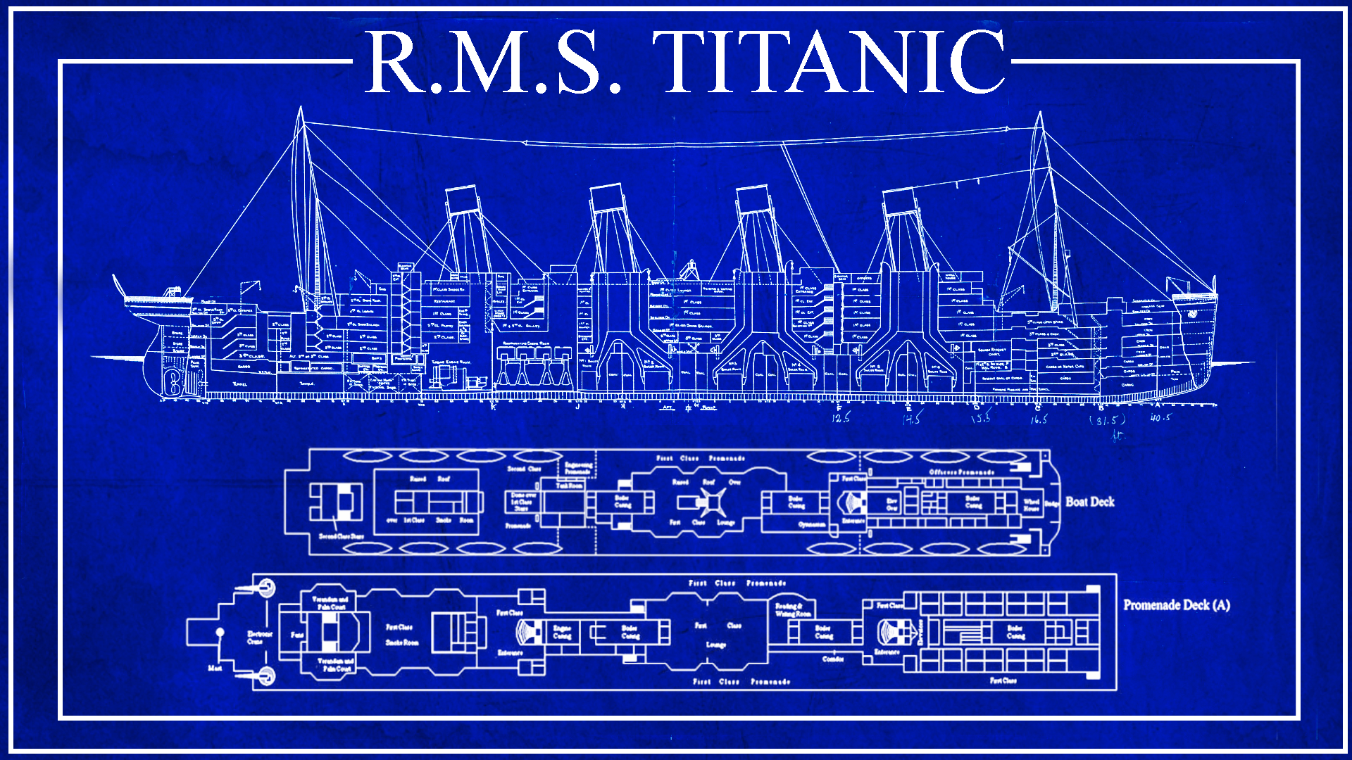 To commemorate the sinking of the RMS Titanic on Monday, 15 April 1912 at 02:20 ship’s time (05:18 Greenwich Mean Time), Dunebat Country presents this free wallpaper based on the blueprints of the ill-fated ocean liner.